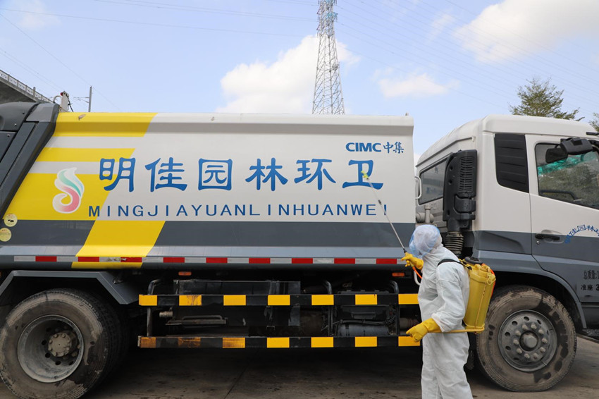 該公司全力做好垃圾清運、處理及垃圾轉運站、垃圾收集箱(桶)、垃圾清運車等環(huán)衛(wèi)設施設備的消毒工作。
