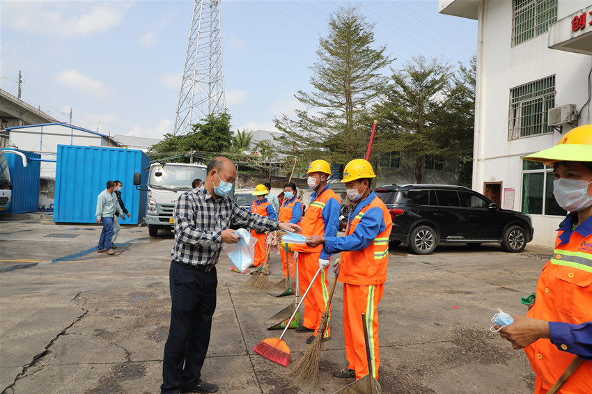 環(huán)衛(wèi)工人每天都要在街面上活動,干的是最臟、最雜的活。在疫病防控的特殊背景下,其自身的安全防護也尤其重要。因為環(huán)衛(wèi)工人若感染傳染性疾病,其自身將成為移動的傳染源,非常危險。對環(huán)衛(wèi)工人進行培訓刻不容緩。陳云說,該集團首先對編制新冠病毒防疫手冊,對環(huán)衛(wèi)工人的安全防護知識進行普及,此外,由于防護服等醫(yī)用物資相對緊缺,不少防護服、口罩都是托朋友從國外采購,在防護物資上盡全力為一線環(huán)衛(wèi)工人優(yōu)先保障,并保證一線環(huán)衛(wèi)工人的口罩供應。