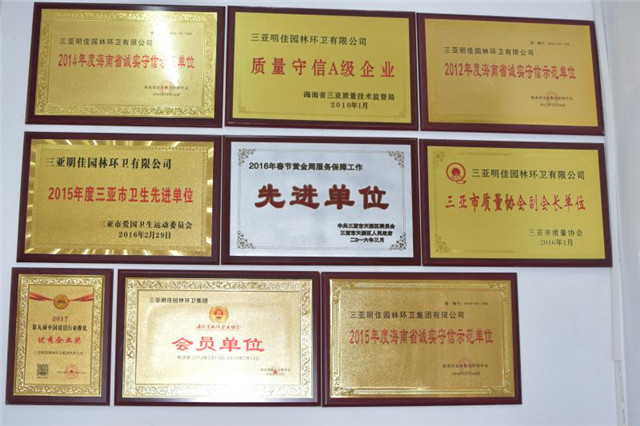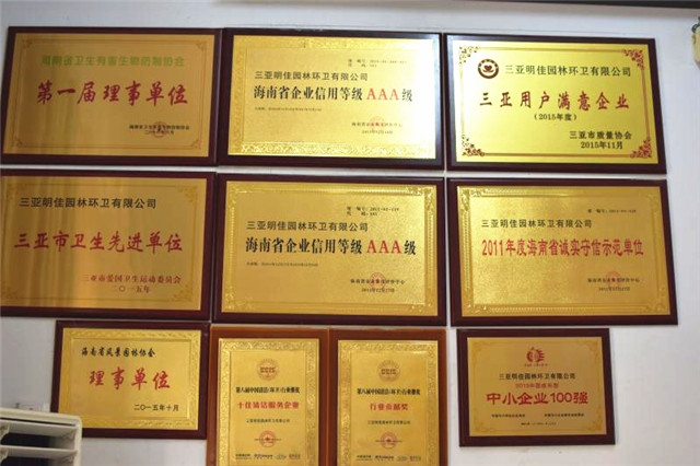 目前母公司連續(xù)五年被海南省企業(yè)信用評(píng)定中心評(píng)定為信用AAA等級(jí)單位,并榮獲中國(guó)清潔清洗行業(yè)國(guó)家一級(jí)資質(zhì)、城市環(huán)境衛(wèi)生經(jīng)營(yíng)服務(wù)A級(jí)資質(zhì)、城市園林綠化三級(jí)資質(zhì),被中國(guó)清潔行業(yè)推選為國(guó)家三星級(jí)企業(yè)、十佳清潔服務(wù)企業(yè)、杰出貢獻(xiàn)企業(yè),并榮獲2016年中國(guó)清潔行業(yè)百?gòu)?qiáng)品牌,成為中國(guó)清潔行業(yè)常務(wù)理事單位、中國(guó)衛(wèi)生有害生物防制協(xié)會(huì)會(huì)員單位、中國(guó)城市環(huán)境衛(wèi)生協(xié)會(huì)會(huì)員單位、海南省衛(wèi)生協(xié)會(huì)理事單位、三亞市環(huán)境保護(hù)協(xié)會(huì)副會(huì)長(zhǎng)單位,公司先后多次獲得國(guó)家、省、市獎(jiǎng)勵(lì)和表彰40余次,成功在海南省股權(quán)交易中心掛牌,代碼:90777,并積極籌劃在新三板上市,已真正成為海南省環(huán)衛(wèi)行業(yè)的龍頭企業(yè)。